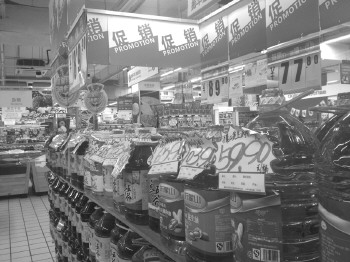 在城区一家大型超市内,这里专门设立了一个货架作为食用油促销区域。整个区域里不少商品的标签纸颜色换成了代表优惠促销的黄色。与促销形成反差的是,前来购买食用油的顾客寥寥无几。