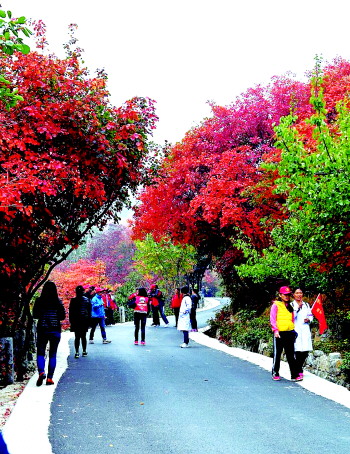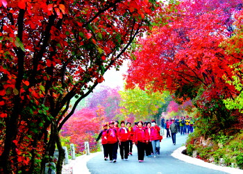 深秋的红叶谷漫山红遍、层林尽染,美不胜收。起伏的山峦倒映在碧绿的湖面上,像一幅绝美的山水画,徜徉在景区的山间小道,不仅可以欣赏到红叶,还可以体验浪漫的情调。