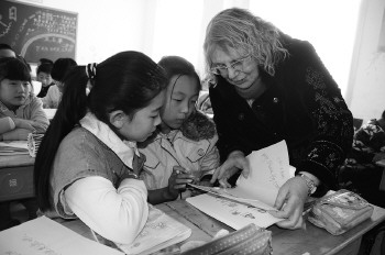 打开《让我们说英语吧》,记者看到,书本内容都是中英文对照。除去英语字母表、数字等内容外,基本上都是学生们在日常生活中容易接触到的知识。每一部分都配有手绘画,让学生们学习时更加容易入手。不仅如此,书中还有很多英文歌曲,温雅惠还特地邀请朋友录音刻制成光盘赠送给孩子们学习。“我来中国后基本上都是从事英语教学,对孩子们学习英语规律也算是有一定的研究了解,这本书就是结合学生们的学习规律来编制的。这本书不是一本教科书,而是帮助孩子们在上中学之前,能够以一种口语体的方式接触并学习英语。”