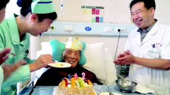 10月26日上午,市中心医院急诊病房医护人员来到周永福老人的病房内,共同祝贺他102岁生日。今年6月以来,老人因为患急性胆囊炎、肺炎等多次入院治疗,成了急诊科的“老面孔”。7天前,老人再次因为腹痛、发烧而被送至医院急诊病房住院治疗。期间,老人在病房内迎来了102岁的大寿,老人就在医护人员的陪伴下,度过了一个特殊的生日。
