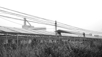 22日上午10点,在莒县陵阳镇陵阳街村一钢塑厂里,工作人员正在擦拭光伏电板。记者在现场看到,该光伏发电板建在厂区的一片空地上,空地下边是四亩地左右的桂花园。桂花园上边搭建了一些七八米高的架子,就和大棚一般,光伏电板就在搭起的架子上,安装一个月以来,已经发电五万余瓦。这只是陵阳街村进行科技升级,发展光伏产业的冰山一角。在该村南边一片空地上,支撑光伏发电的架子也正在紧张安装中。