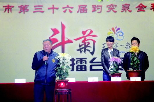 29日,趵突泉景区首次“斗菊”大赛在白雪楼戏台开战。当日是“斗菊”初赛,济南市园林局局属12家单位参与,参赛的菊花类型分为球形、飞舞形和龙爪形。经过层层投票选拔,天下第一泉趵突泉景区获球形类菊王,济南市花圃公园管理中心获飞舞形类菊王,济南市园林花卉苗木培育中心获龙爪形类菊王。初赛评出的每种菊花类型前三名,将参加30日的决赛,与全国各地的品种菊一决高下。