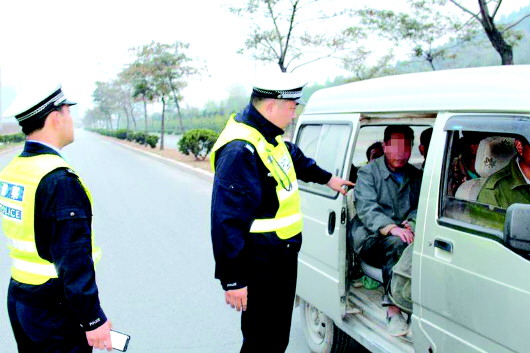 近日,长清交警大队京福高速中队民警在大学城芙蓉路开展“双七”专项整治时,查获一起涉嫌超员违法行为。经民警现场检查,车牌号为鲁A27×××号的小型普通客车,核载5人,实载8人,涉嫌违法超员。民警依法对该车驾驶员处以记6分、罚款200元的处罚。 本报通讯员 郭嵩 摄