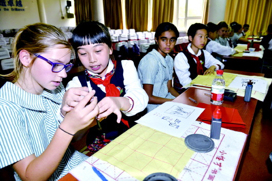 澳洲学生学习中国书法。本报记者 郭建政 摄