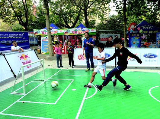 下午1点左右,甸柳一小二队的7名球员向居民表演了精湛的颠球技艺,之后又在mini足球场进行了一场3人对抗赛,比赛场面很精彩。