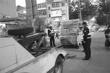 “在上一次整治时,这辆电动车车主多次保证三天后将车拖走,可到现在这辆车一直停放在这,长时间停放侵占公共停车资源,这次我们要将这辆电动车依法拖移到大队停车场。”一大队副大队长于辉告诉记者。