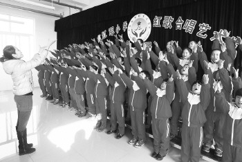 近年来,安丘市红军小学重视艺术教育的发展,定期举办红歌艺术节系列活动,为师生搭建展示和提高自我的平台。通过举办活动培养了学生热爱祖国、热爱人民、热爱民族,继承了革命先辈的光荣传统,弘扬了伟大的红军精神,也向社会展示了该校素质教育成果和学校特色文化,展现了师生奋发向上的精神风貌,形成了良好的社会影响。图为安丘市红军小学的师生们在红歌艺术节上唱红歌抒发爱国情怀。