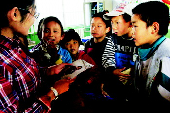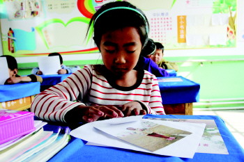 沿着弯弯曲曲的山路到达学校已经是中午12点,因路途遥远,没有回家的孩子们正在校园里面玩耍。看到摄影师来到后,孩子们马上认出了他们。“叔叔,你们又来给我们拍照片吗?”“叔叔,你到我教室里坐一坐啊。”孩子们围在摄影师的周围,叽叽喳喳地笑着闹着。“我来给你们送照片了。想不想看看你们拍的照片?”摄影师一飞掏出一摞照片,高高举起在孩子们面前展示。