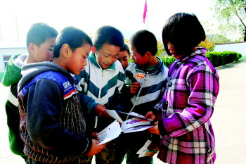 29日,芒果摄影工作室的工作人员将制作好的照片送到了沂源县菜园小学的孩子们手中。孩子们拿到照片,非常兴奋,你看看我的,我看看你的,快乐地交流着。