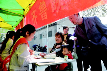 漱玉平民大药房工作人员给社区居民查体。 本报记者 王鸿哲 摄