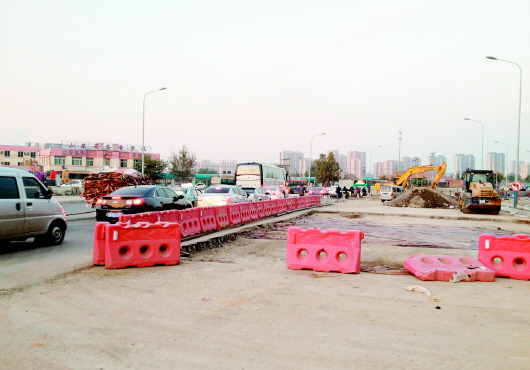 化纤厂路至西周南路口则仍在半封闭施工。上述负责人介绍,该段约180米的路段,增加了一条热力管线施工,工期有所延长。目前该段快车道仍在半封闭施工,两侧非机动车道和人行道已经建完。由于抗战胜利日和世界历史学大会期间停工近半个月,工期受到影响。不过,历城车管所至西周南路口的未完工路段争取在11月中旬完工。