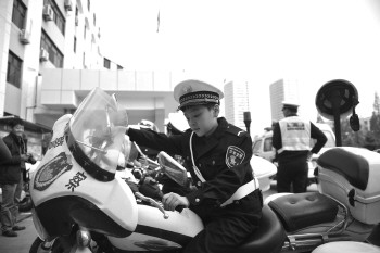 骑上警用摩托,真威风。