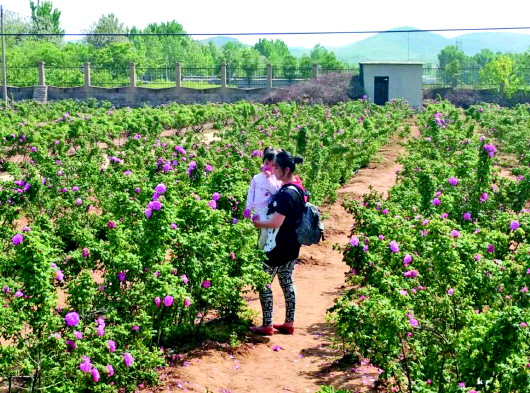 ◥玫瑰是平阴的一张招牌,每年5月,玫瑰盛开,引来市民观赏。(资料片)