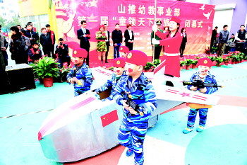 “丹桂飘香暖金秋,军旅气质冠山推”。10月31日和11月1日,山推幼教事业部首届“童领天下·军旅节”闭幕式活动隆重举行。步伐整齐、精神抖擞的幼儿版陆海空方队一一亮相,同时,由老师们精心制作的“武器装备”方队也博得家长阵阵掌声。