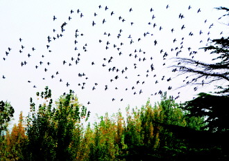 11月3日傍晚,山亭区西集镇政府院内出现百鸟投林奇观,令人叹为观止。据了解,近期每天的傍晚时分,鸟们便从四面八方聚集到西集镇政府院内的树上休息,鸟群中有喜鹊、斑鸠等,每天约有三五百只。 本报通讯员 赵连友 本报记者 袁鹏 摄影报道