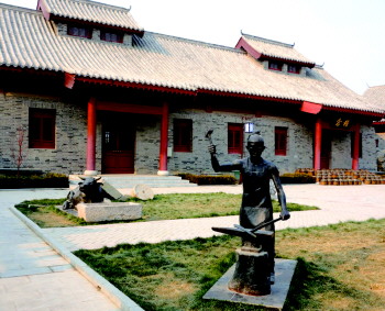 位于古城楼东大街卫仓内的铁匠雕塑。