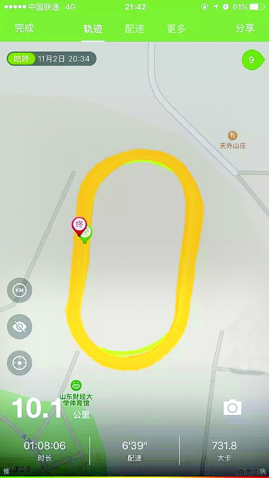 “一旦跑起来,感觉根本停不下来。”小董说,他跑步追求数量,喜欢计算圈数,他自创“换跑道计圈法”,从内圈开始,每跑一圈向外换一次跑道,跑到最外圈向里换跑道。跑完一万米后,看着跑步软件上密密麻麻的椭圆形,非常有成就感。对此,历城马拉松协会副会长吴晓霞认为,适量运动有益健康,但过量运动不可取,也并不是所有人都适合长时间跑步。从事医疗工作的吴晓霞曾在跑道上抢救过好几个突然倒地的跑马者,有的抢救及时脱离了危险,有的却没能抢救过来。提起一些极端的跑步者,她唏嘘不已。