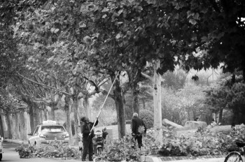 11月9日,晶华大道上工作人员正在给路边的行道树修剪树枝,以便让树木在来年保持良好的树型。 本报记者 马志勇 摄