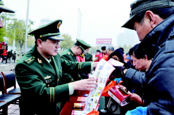 11月9日“消防宣传日”,消防部门在中心广场设立消防常识宣传点,向市民宣讲防火、灭火常识。