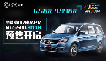 风行S500全面采用了轿车化设计理念,厢式轿车外观及整车流线线条搭配,简洁又不失稳重。内饰风格上,风行S500也延续了轿车化风格,通过简约的中控台线条,布局清晰的多媒体系统和空调系统功能分区、达到极简主义的内饰设计风格。空间设计上,风行S500拥有4620×1810×1720mm的车身尺寸,以及超越同级车型的2750mm超长轴距,拥有更加极致均衡的空间体验。动力性能上,风行S500则选择搭载了1.5L三菱4A91与1.6L三菱4A92两款黄金小排量发动机,具有动力强劲、高效节能的显著特点,也是同级别率先采用黄金动力组合、油耗低至轿车标准的紧凑级家用MPV,实现了强劲动力和经济油耗的平衡。在此基础上,风行S500还将提供1.5L+5MT、1.6L+5MT、1.6L+CVT共计3种动力总成。同时,得益于仅为0.349的优秀风阻设计,风行S500的油耗在同等排量车型中可达到轿车级标准,CVT车型百公里油耗仅为6.5L。安全性能上,风行S500采用欧系3H高刚性车身,综合整车高强钢使用率达48%,关键部位更使用4层钢板,搭配前后强劲的防撞梁,及合理的车身结构,堪称堡垒级防护。科技配置上,风行S500搭载了多项比肩合资中级车的旗舰科技配置,一键启动、无钥匙进入系统、定速巡航、后视镜电动折叠等先进科技配置一应俱全,让驾驶过程变得更加轻松。