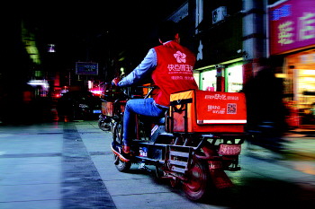 傍晚还在为顾客送餐的巨野快点微生活工作人员。