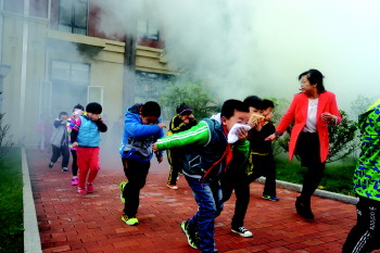 一股黑色浓烟从教学楼飘出,学生在窗户边拼命呼救。消防员赶到后将学生救出“火场”。9日是消防宣传日,青岛市消防支队的消防官兵走进红岛中心小学,为全校2000余名师生举行了一次别开生面的消防安全知识讲座还组织了疏散演练。