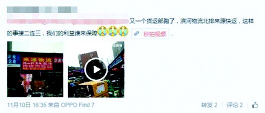 来源物流工作人员告诉记者,目前收发货一切正常。至于10日下午商户在其门前聚集一事,工作人员表示是一场误会,商户误以为他们来源物流和去年跑路的桃园物流是一个老板,所以都来他们这里讨要被桃园拖欠的货款。