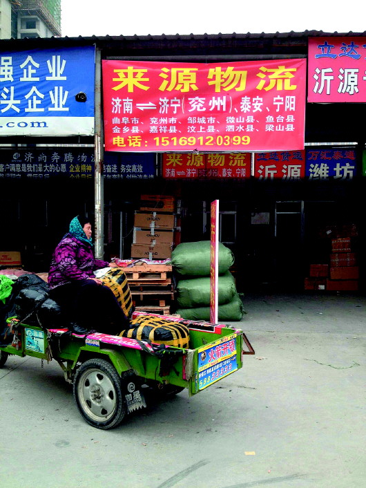 11日下午,记者来到小清河北路的滨河物流园,在物流园的北排,记者找到了来源物流。但与网友反映情况不同的是,记者看到该物流公司并没有跑路,而是在正常营业,门口放着等待发送的货物,三名工作人员正在吃午餐。