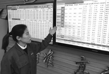 监控平台上显示,一次管网供水温度不到27℃。本报记者 庄子帆 摄