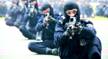 11日上午,济宁公安特警训练科目展演准时拉开序幕。两个多小时中,参演特警队员集中展示了练兵成果。