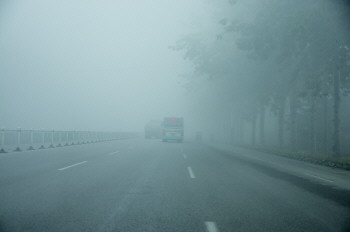 清晨大雾,高速公路上能见度不足二十米