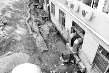 创城之前,日照大学城东升园一号楼沿街商铺后边泔水垃圾横流。