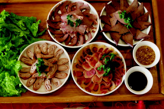 民俗有言:天上龙肉,地上驴肉。色泽酱红,肉质酥烂醇香,味道鲜美可口,配合白芷、八角、肉蔻、丁香等十几味草药,急火攻三小时许,视肉肥瘦采取除油或添油。汤中仅剩一层薄油罩住热气不易蒸腾,再将肉压入汤内,改用文火焖煮四五小时即可。