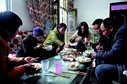 当医院的专家到老人家中时,老人正和儿孙一起吃饺子过农历十月初一。