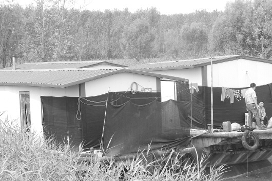 民警用望远镜远远观察,发现船只每条约20米长,都搭起了顶棚,每天早上8点和下午3点左右,都有其他船只拉运东西,物品都装在一个个黑色油桶内运走。