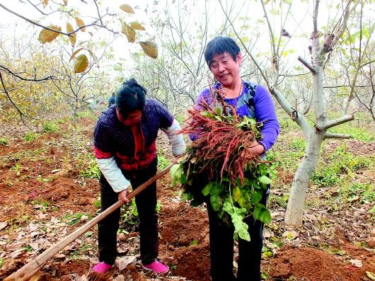 据介绍,丹参种植是南黄村的扶贫开发项目,全村种植面积150亩。该村在为贫困户免费提供种苗、肥料和技术支持的同时,还积极与马山镇双泉庄中药材基地签订收购合同,确保丹参种植户有产量、有销路,解除了村民种植中药材的后顾之忧。