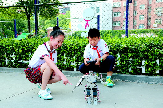 素养多维度提升——师生是数字化校园创建的关键因素,注重全体师生信息技术应用水平的培训和提高是学校现代化的重要支撑。一直以来,学校多途径入手培养与提升学生的信息技术素养。在“面”上,抓实信息技术课程,从四年级开始开齐上足信息技术课程,由3名专职计算机教师任教信息技术课,规范课程管理,落实考查制度,加强信息技术课的教学研究;在“点”上,强化信息技术骨干应用团队建设,开发出了基于网络的、有学科特色的拓展型课程,校级团队与班级社团活动相结合,定期开展信息技术活动,由专职信息技术教师进行提高培训,开设《电子小报制作》、《网页制作》、《动画制作》、《乐高》、《机器人》、《玩转pad》等多门课程,学生在教师指导下,基于网络开展学习,获得了相关知识,培养了信息素养和全球视野。