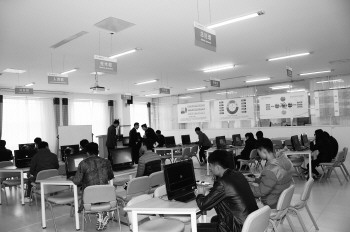 在创新创业基地里,学生可以进行创业前的模拟,向创业更迈进一步。 本报记者 孙国祥 摄