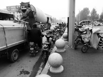 近日,湖滨大道上的万达广场开始营业,由于停放的非机动车辆较多,不少车辆直接停放在道路上,给道路交通造成安全隐患。 本报记者 马志勇 摄