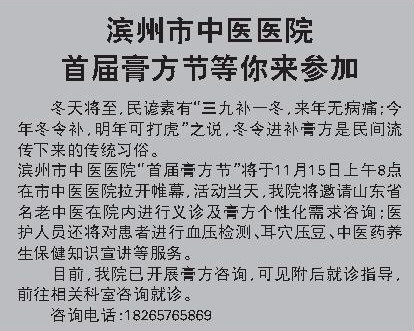 滨州市中医医院首届膏方节等你来参加