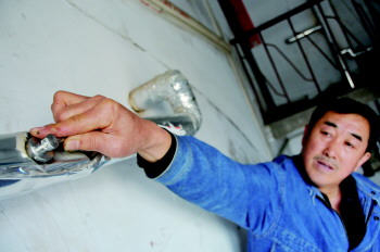 吕明是一名普通的供暖管道维修工人,平时大部分的维修热线电话都是由他接听。吕明和另外两个工作人员负责的片区供热面积3万多平米,4000多用户,片区内还有三个泵房。“电话24小时开机,一天电话不断,我们三个人晚上轮流值班,白天照常干活。”吕明说,早已经习惯了这样的生活。