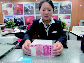 11月12日上午九点半,带着新版百元大钞的运钞车驶进了中国银行枣庄分行营业区。大图为,银行柜员展示新版百元钞票。小图为,新版百元钞票。 本报记者 韩微 摄影报道