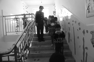 近日,山亭消防大队组织工作人员来到辖区学校,向小朋友们宣传消防安全常识,传授紧急情况下的自救技能。图为消防逃生演练中,小朋友们按照消防人员传授的要领用毛巾捂住口鼻,有序从室内撤离到室外。 (吴晋楠)