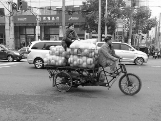 时间:2015年11月9日 自述:大叔骑着三轮车运送柚子,可能是怕柚子滚落,大妈就高高坐在柚子堆上押运。 点评:这张照片告诉记者,以后吃柚子一定要洗一洗再动口。
