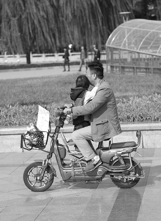 时间:2015年11月3日 自述:电动车呼呼的跑,一个小孩就站在车上的儿童座椅上,非常危险。 点评:这个姿势实在是危险,如果遇到障碍急刹车,小孩可够呛能站稳啊。