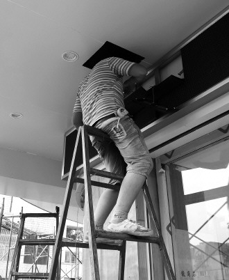 时间:2015年9月3日 自述:工人把头伸进顶棚里工作,顶棚里漆黑一片,头都不见了。 点评:这位工人这么“头”入也是够辛苦的,包工头怎么没给配个头灯呢,要不这活多难干。
