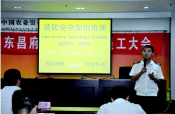 为进一步增强全行员工的消防安全意识,提高火灾应急处置能力及安全自救能力,近日,农行聊城东昌府支行举办消防安全知识讲座。此次讲座邀请当地消防教员进行授课,授课老师结合近年来国内发生的多起典型重大火灾事故案例,详细讲解了高楼火灾的逃生方法,电器火灾、燃气火灾、车辆起火的应急处置办法,现场演示了灭火器等消防器械的使用方法和步骤。