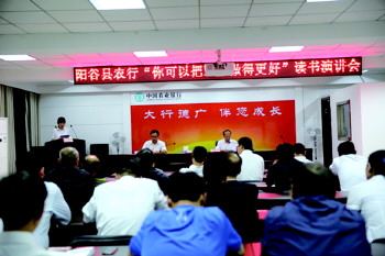 10月9日,农行阳谷县支行召开“你可以把工作做得更好”读书演讲会。部室、网点负责人,中青年业务骨干以及新入行大学生员工纷纷上台演讲,交流阅读《你可以把工作做得更好》一书的感悟,将先进的工作理念、优秀的工作方法与工作实际相结合,参会员工纷纷表示要摆正心态,追求卓越,进一步将工作干得更好。