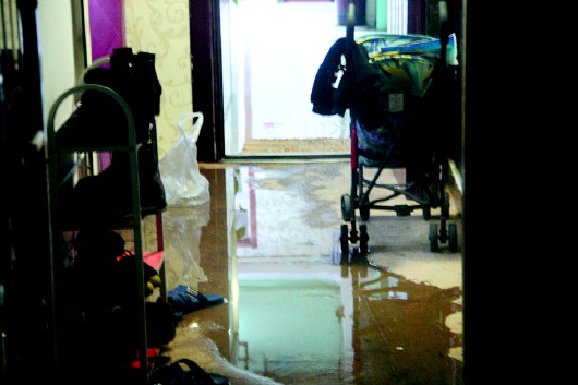 15日上午,3号楼2单元的26楼也出现同样紧急的情况,所幸发现较早,及时检修,仅26楼的楼道内有小面积积水,未造成过多损失。