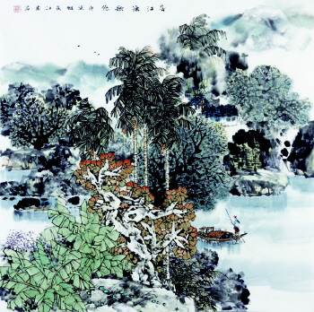 南朝画家宗炳言:“圣贤暎于绝代,万趣融其神思。余复何为哉,畅神而已”。中国古人普遍认为“万趣”与“神思”融合之后,才会物我一体,使自己精神舒畅,并显现出“道”来。我喜欢遍览古今之画,尤其观南画几以为常,但是在当代作品中,让我印象最深刻、甚至产生一种难于言表的吸引力的还是阮江华先生的南画山水,因为阮先生的作品让我看到了“万趣”与“神思”的融合、造“景”与造“境”的殊途同归,不能不说这是很多画家很难达到的境界和高度。
